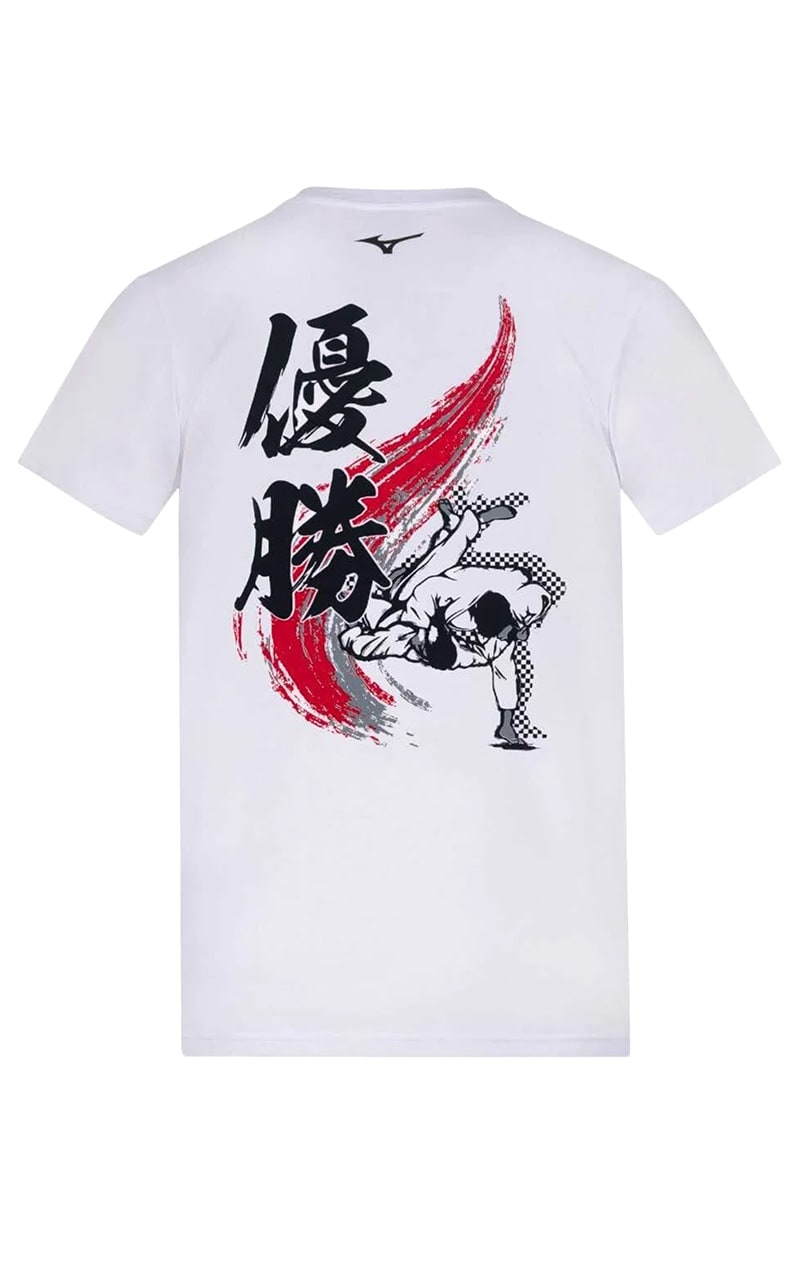 Sportliches Judo T-Shirt von MIZUNO mit einem großen Druckmotiv („Yūshō“ (優勝) – Sieg und Meisterschaft) auf dem Rücken. Ideal für Trainingseinheiten, Freizeit oder als Symbol für deine Leidenschaft für den Sport und den Ehrgeiz, der dich antreibt.
